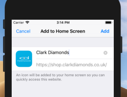 Finally press 'Add' and the Clark Diamonds app will be installed and added to your home screen!